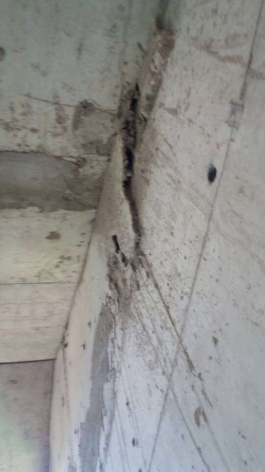 (7)構件超載引起的裂紋,例如:構件在超出設計的均布載荷或集中載荷作用下產生內力彎矩,出現垂直于構件縱軸的裂紋。并上下延伸。