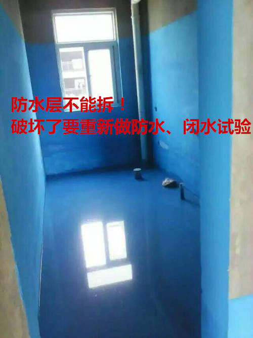 防水這個(gè)大家還是懂的,不想樓下跑來要咱們索賠,不能破壞喲,破壞了也要重新做防水,記得做閉水試驗(yàn)喲,夏天24小時(shí),冬天48小時(shí),樓下屋頂不滲水就ok。
