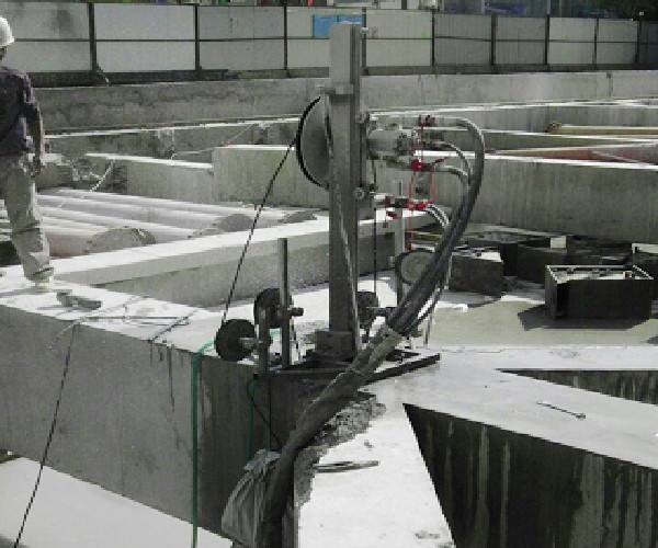 3、線鋸切割:線鋸是對厚混凝土和不規(guī)則混凝土的切割和拆除設(shè)備,切割面平整。一般用于橋梁、道路等結(jié)構(gòu)。