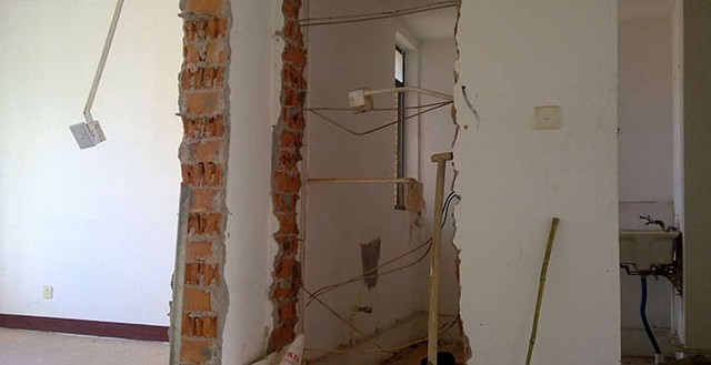 拆墻時,必須先用電鋸將墻切開,并在地上鋪好木板、破被子、舊床墊、地毯等緩沖物品,然后讓工人砸墻用大錘。這樣做可以有效地防止對墻體結構、內置管道和樓板的多重損壞。并且必須在現場嚴密監督,否則,工人永遠不會關心您的要求。墻體拆除后,需要按計劃建造新墻體。