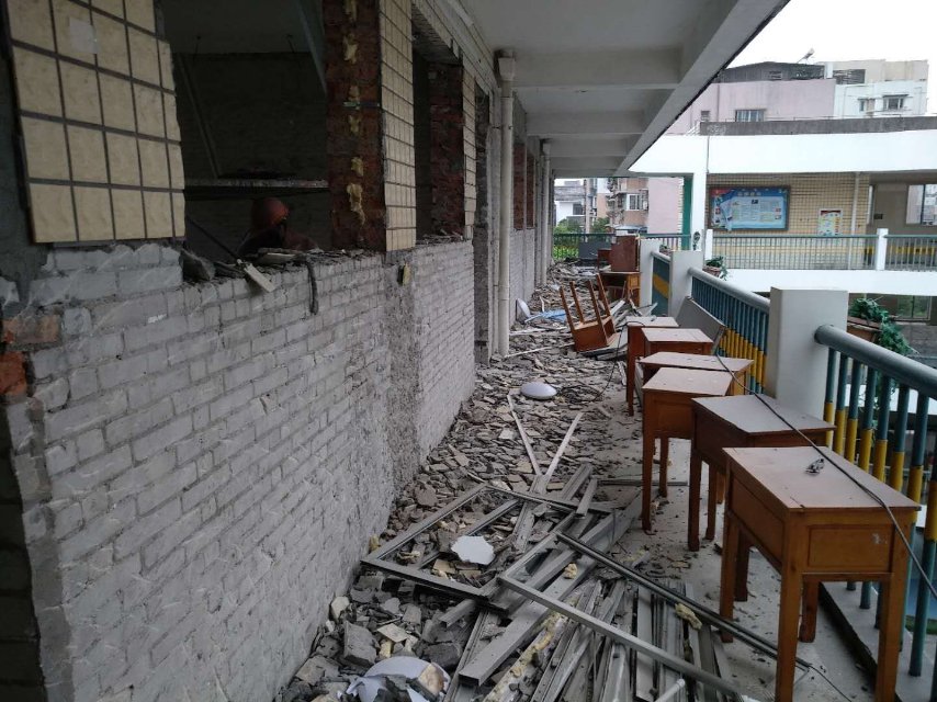 樓下設置了柵欄,并設置了人員看守,以免傷害行人。