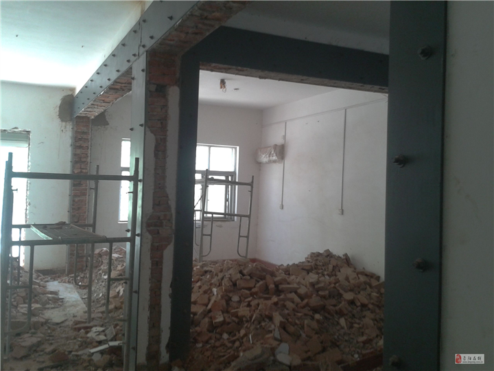 (2).在保證立柱牢固穩定的情況下,拆墻。同時根據梁的截面尺寸和支撐長度