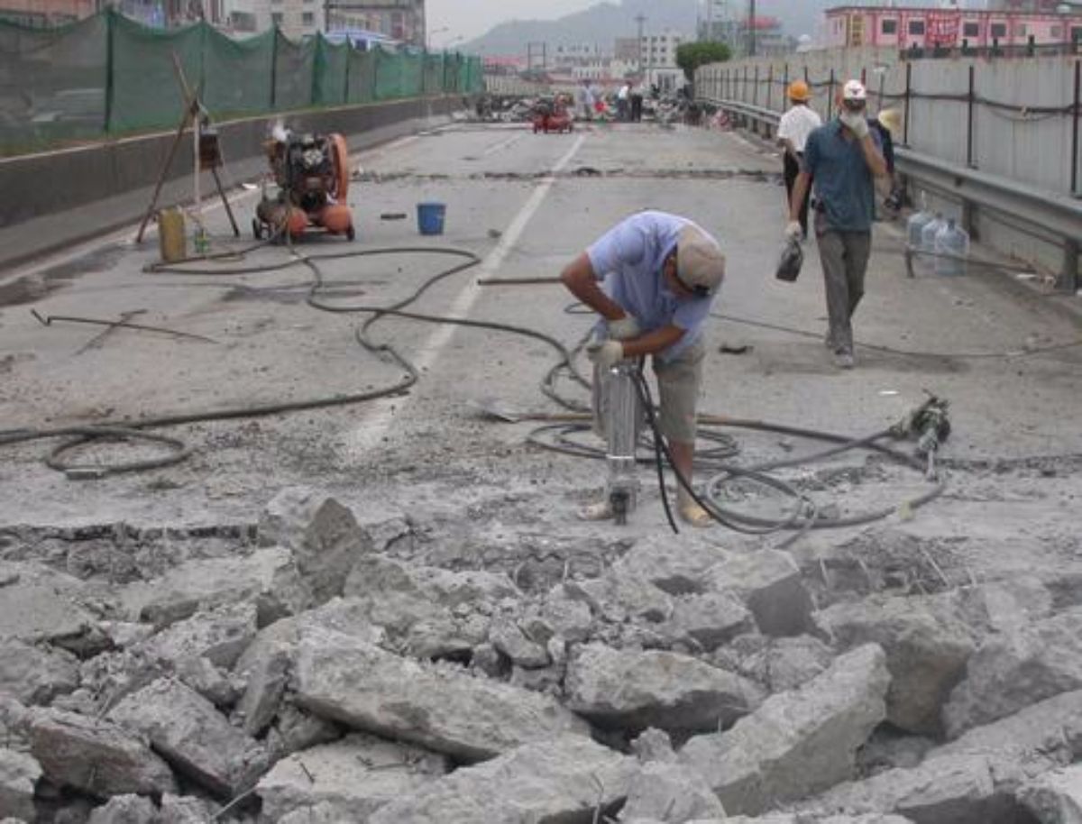 1、靜態(tài)爆破拆除:靜態(tài)破碎也稱靜態(tài)爆破。粉碎劑→風(fēng)鎬鑿;用氣槍在支撐梁表面鑿開,切斷箍筋,然后在梁上鉆孔,設(shè)置膨脹劑,反應(yīng)后膨脹迫使梁體開裂,然后用空氣槍進(jìn)行鑿破,然后清理。優(yōu)點(diǎn)是沒有限制,比較安全,清洗簡(jiǎn)單,成本適中;缺點(diǎn)是施工速度慢,需要大量施工人員。