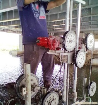 異形金剛石繩鋸可根據客戶的特殊要求制定,主要是加工金剛石鋸片等鋸切工具不能完成的鋸切任務,一般是直徑大或體積大的石材產品。