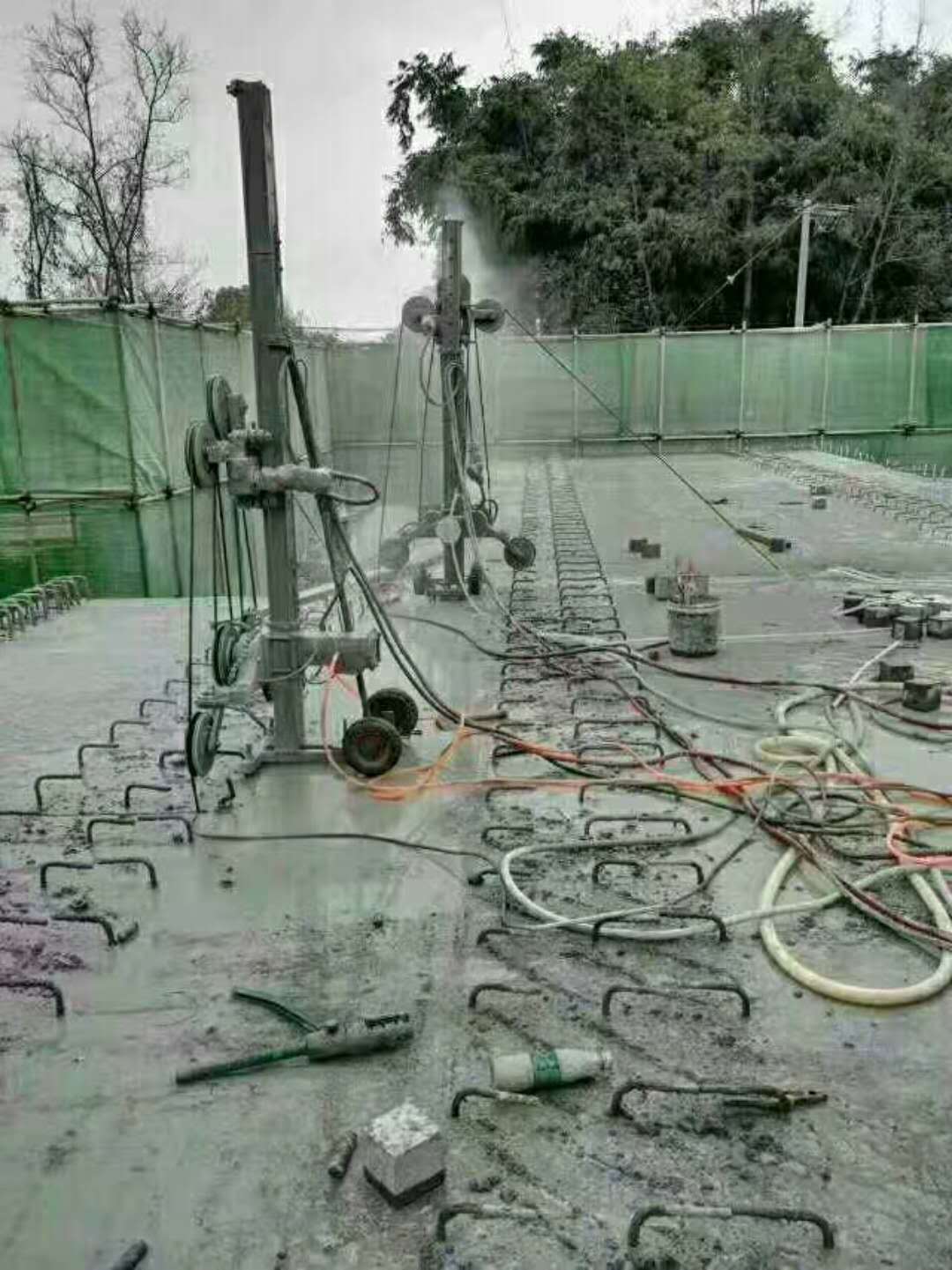 3.‘繩鋸切割’,采用先進的油壓切割設(shè)備作為動力站,通過金剛繩和導(dǎo)輪的連接,實現(xiàn)構(gòu)件靜態(tài)切割的目的。能夠完成傳統(tǒng)切割技術(shù)無法完成的大部分切割任務(wù)的切割技術(shù)。其工作原理是動力站輸出高油壓動力,結(jié)合金剛石切割線、傳動裝置、導(dǎo)向、車輪等。,實現(xiàn)任意方向安裝,從而適應(yīng)各種惡劣環(huán)境下的施工。其顯著特點是可以一次性切割大面積、不規(guī)則的構(gòu)件。