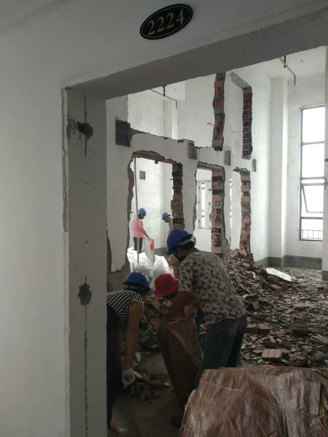 拆墻時,必須先用電鋸鋸切墻,鋪上木板、破被子、舊床墊、地毯等緩沖物品,然后讓工人用大錘砸墻。這樣做可以有效防止對墻體結構、內置管道和地板承重板的多重損壞。而且必須在現場嚴格監督,否則工人永遠不會在意你的要求。拆墻后,需要按照規劃修建新墻。