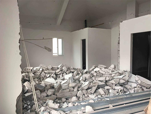 4.拆除外墻和隔墻時,應手動拆除,并由專人監控,以確保施工安全。