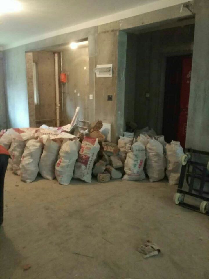 大家知道怎么是正確砸墻的方式了,再說一下專業砸墻的費用這塊,大家以為砸墻工人只是砸個墻就一平方收八九十,那就錯了!薔薇溪谷砸墻的面積按平方算,只有不到8個平方,可是光垃圾裝了80多袋,八十多袋垃圾全部需要裝袋,清出小區,大家可以想象一下其中的工作量到底值不值六百多塊錢?